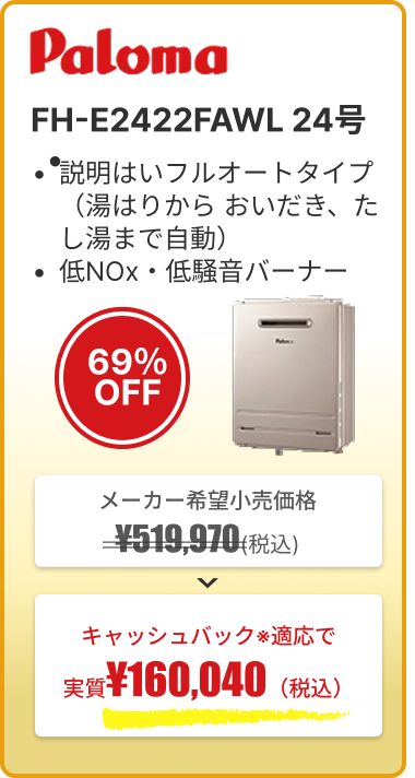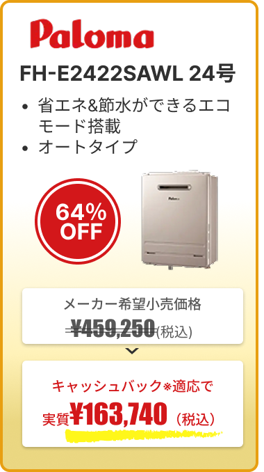 給湯器の買い替えを検討していたので問い合わせました。 メーカーからの卸販売だったのでメーカー保証もあり、 省エネの給湯器に変えたところガス代が大体半額くらいに下がりました。 ガス代は毎月の出費なので非常に良かったです。
