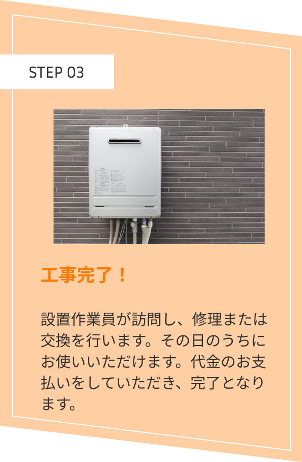 お客様や給湯器の機種によっては、当日の施工が 可能です。