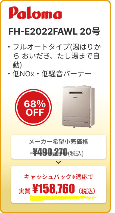 給湯器の買い替えを検討していたので問い合わせました。 メーカーからの卸販売だったのでメーカー保証もあり、 省エネの給湯器に変えたところガス代が大体半額くらいに下がりました。 ガス代は毎月の出費なので非常に良かったです。