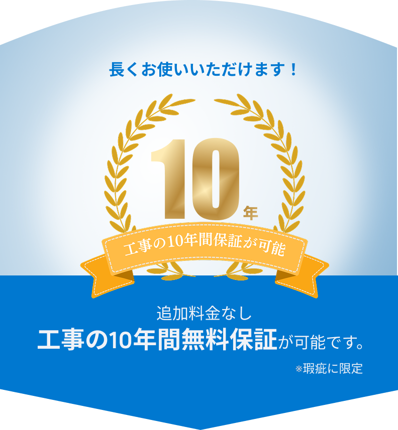 内容や製品によって異なりますが、平均として修理は3年間、 交換は10年間の保証が付く場合が多いです。