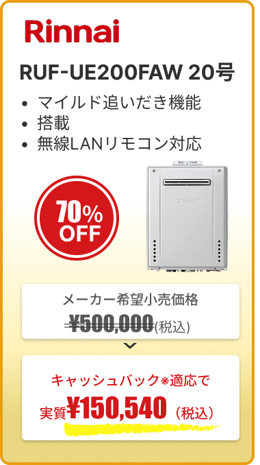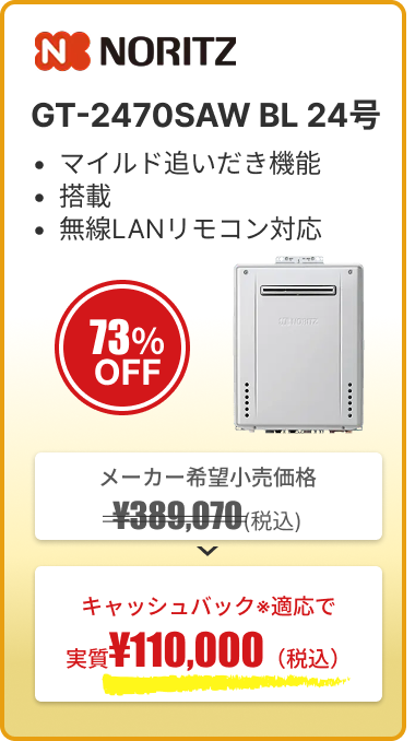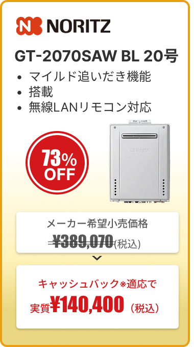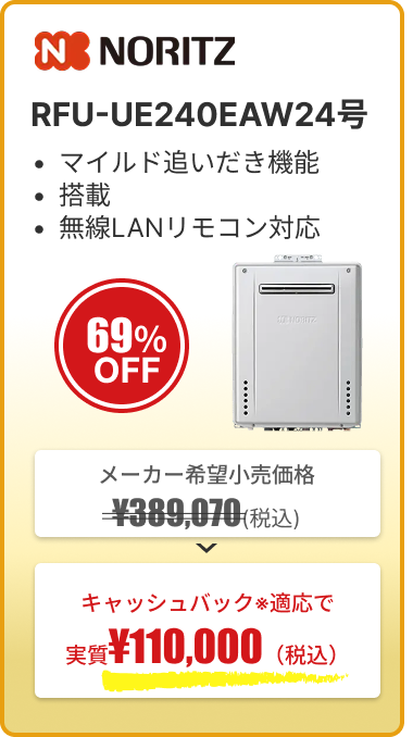 ※キャッシュバック内容の詳細:給湯器の交換を申し込む際にプロパンガスと電気も一緒にお申し込みいただくと、